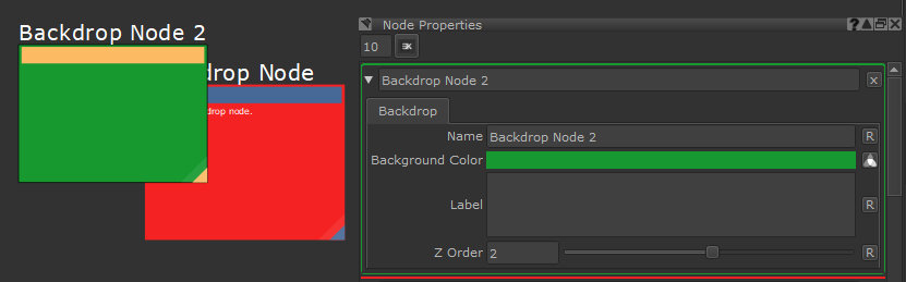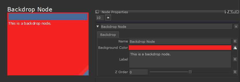 Changes the color of the Backdrop node background. If you make the Background Color a very light color the Name text color will change from white to black.