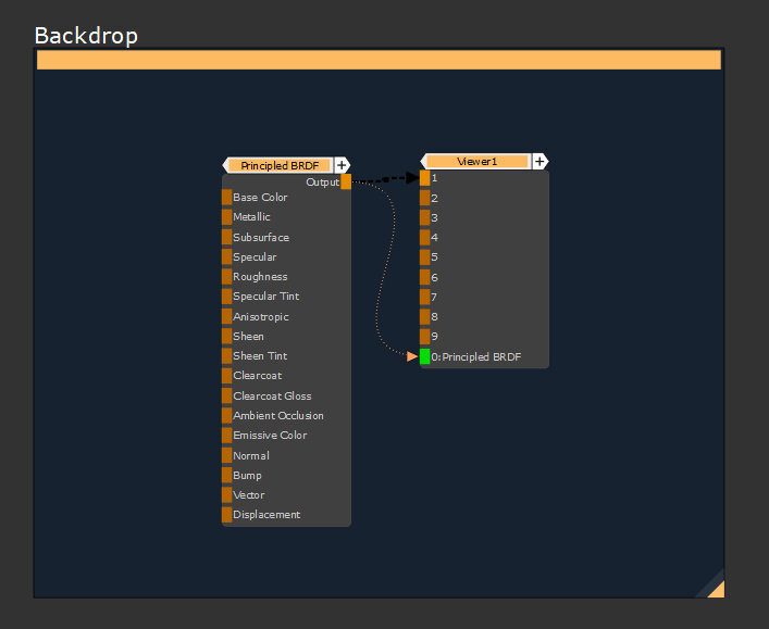 The name of the Backdrop is easily visible even when you zoom out, as it scales with the view. Since the Node Graph can get quite busy, this node is perfect for finding nodes quickly and organizing sections of your material creation to make them easily accessible.