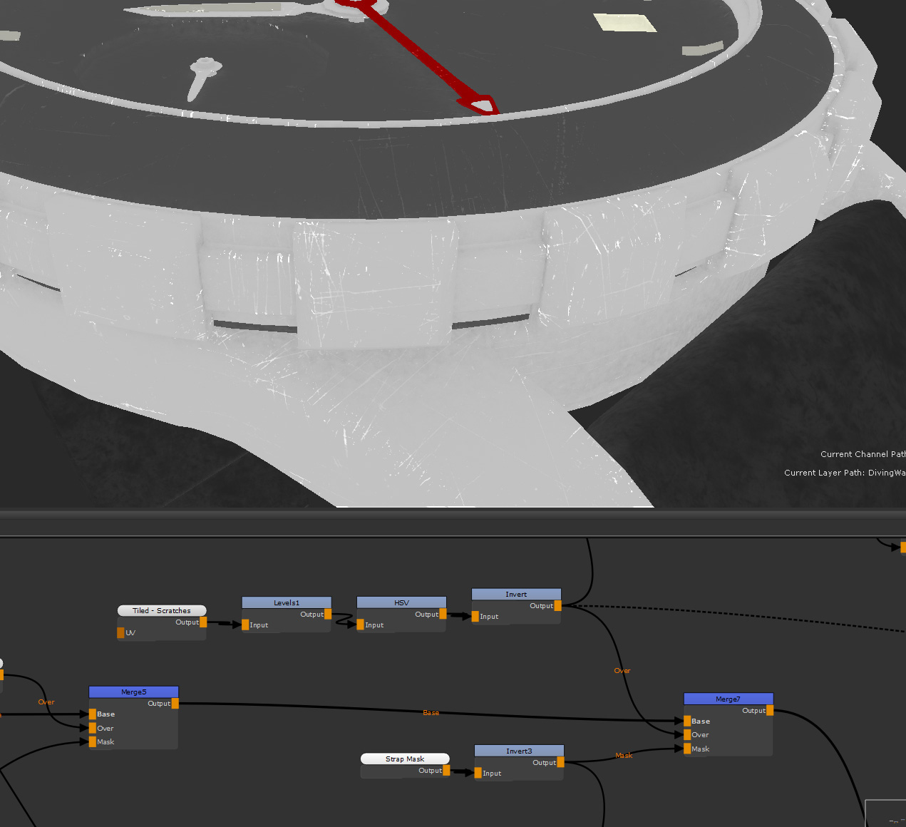 Now we have the scratches ready to be used as a mask or merged on top of our mesh.