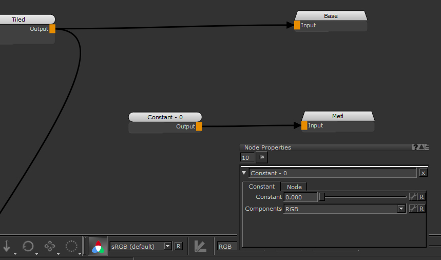 Adding a Constant node with a Constant value of 0 with RGB components selected can be used for the Metallic output of the material, as the wood for our example is not metallic in appearance.