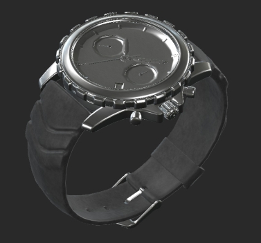 The start of the texturing process of a watch asset with 2 Material nodes and a single mask.