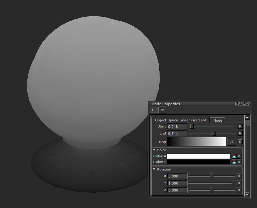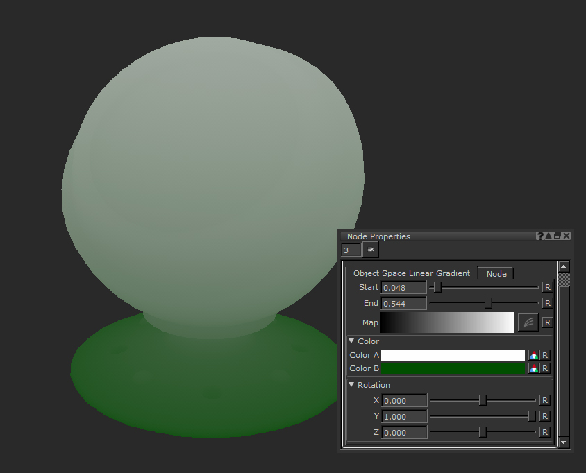 Changes the world space location of the start of the gradient. A value of 0 is the edge of your mesh’s dimensions. Increasing it will cause the start point to move further along your mesh. The slider will cap at 0 but you can type in negative numbers to push it further away, stretching out the gradation.