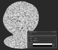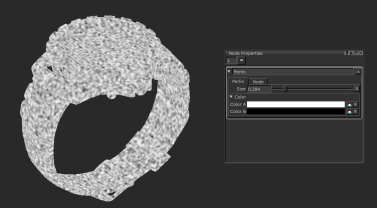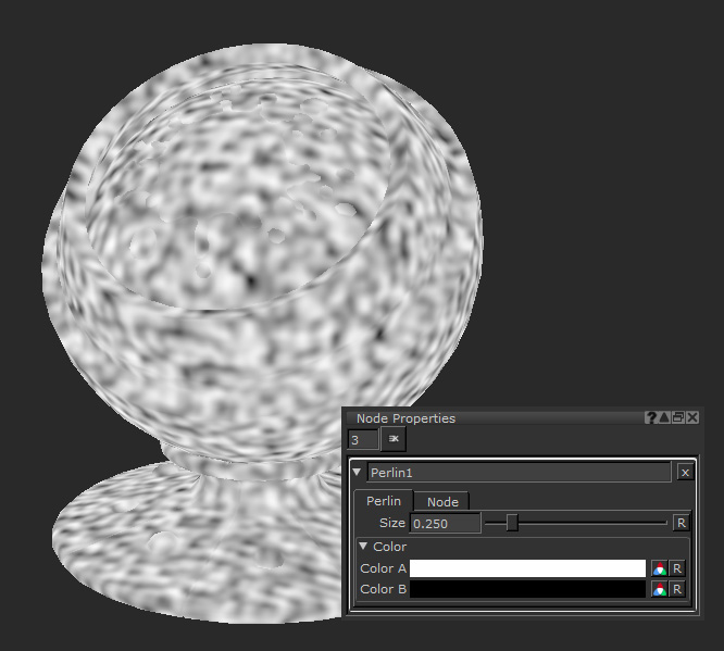 The Perlin node is a procedural noise node that creates a basic two color soft and random texture. The Perlin node is great for masking or adding variety when paired with a Merge node.