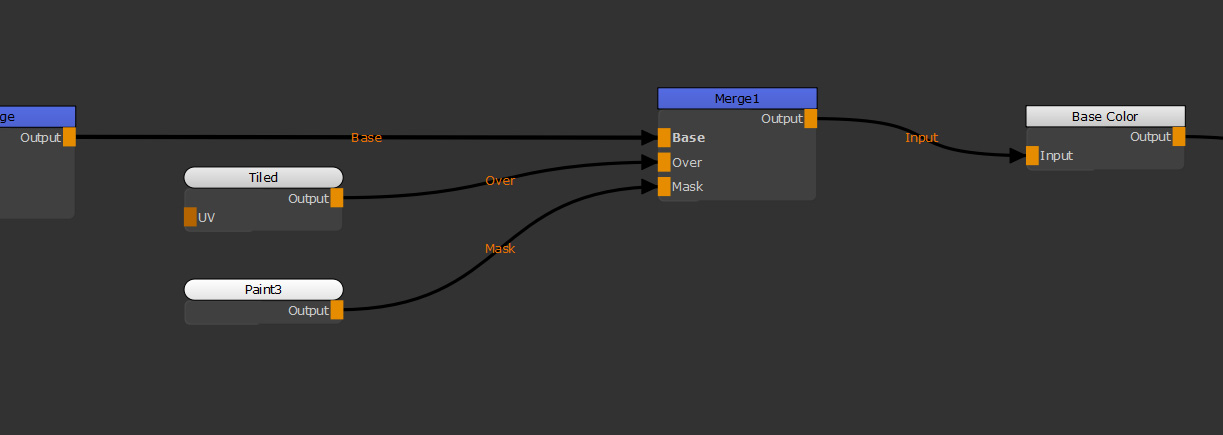 You can multiply a noise node into the node tree of your mask to add some dirt to your asset without hand painting. By using a Merge node you can add extra detail to your textures by using a mask input.
