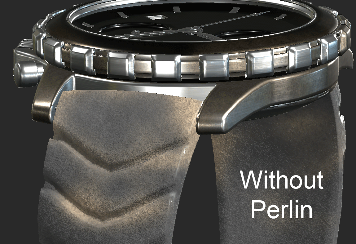 Another good use of the Perlin node and other noise nodes is applying break up to different texture maps. If you have a very flat looking colored metal, or a bump map that needs a bit of undulation, using a Perlin noise overlay can add breakup in lots of different ways.