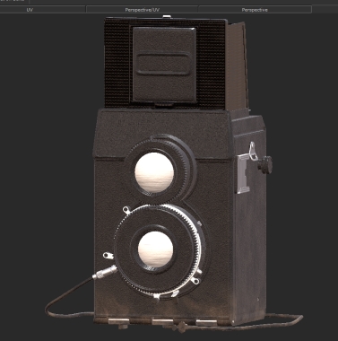The Squiggle node creating the bump on this matte plastic material of an old fashioned camera asset.