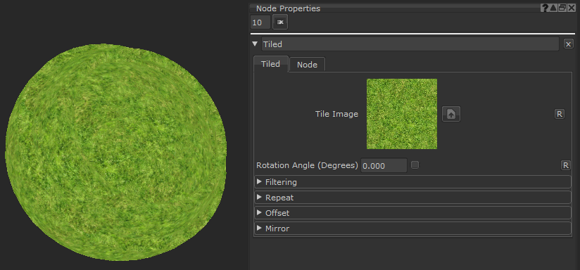 Tip: However you can, for example, plug in a UV node with a Levels node to manipulate the way the Tiled node is placed across the surface of your object. You can also plug in other nodes, like noises, to get more experimental results.
