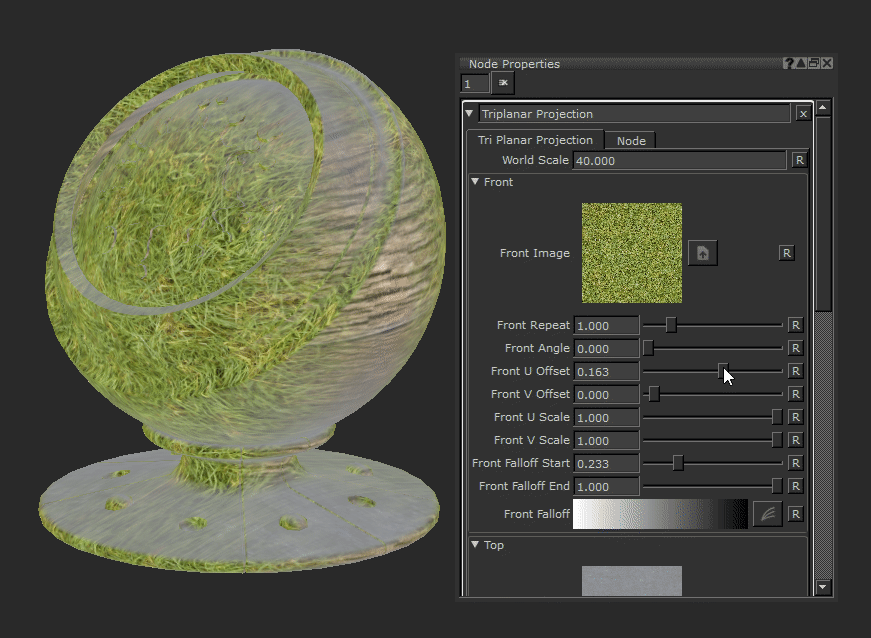 Tip: In some instances a Tiled node may be better on curved surfaces, as a Triplanar Projection node can give strange and blurred results in those scenarios.