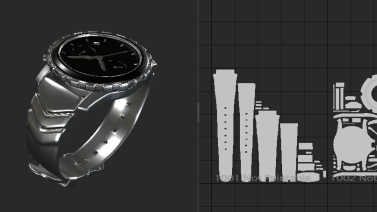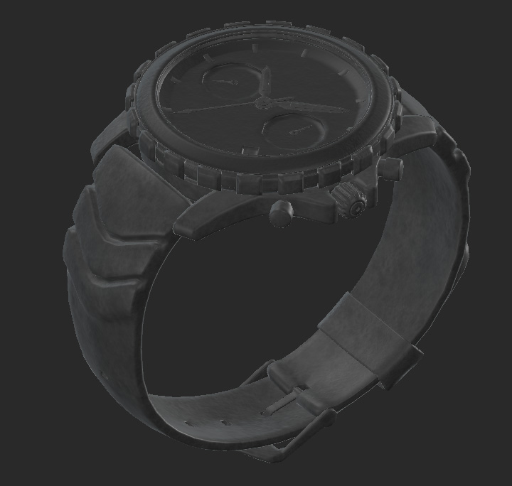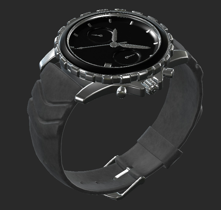 A watch asset with the whole rubber strap in UDIM 1001.