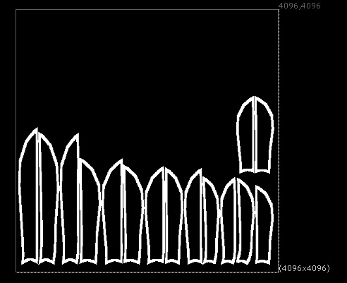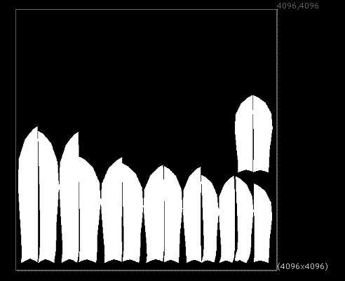 Hand painting the edge of each piece of the wing would be a painful task and even with steady stroke enabled it would be really difficult to get a clean edge. If we could create a mask of the geometry and then erode into that mask, we could then flip it and have just the edge of all the feathers.