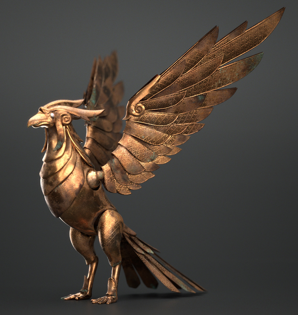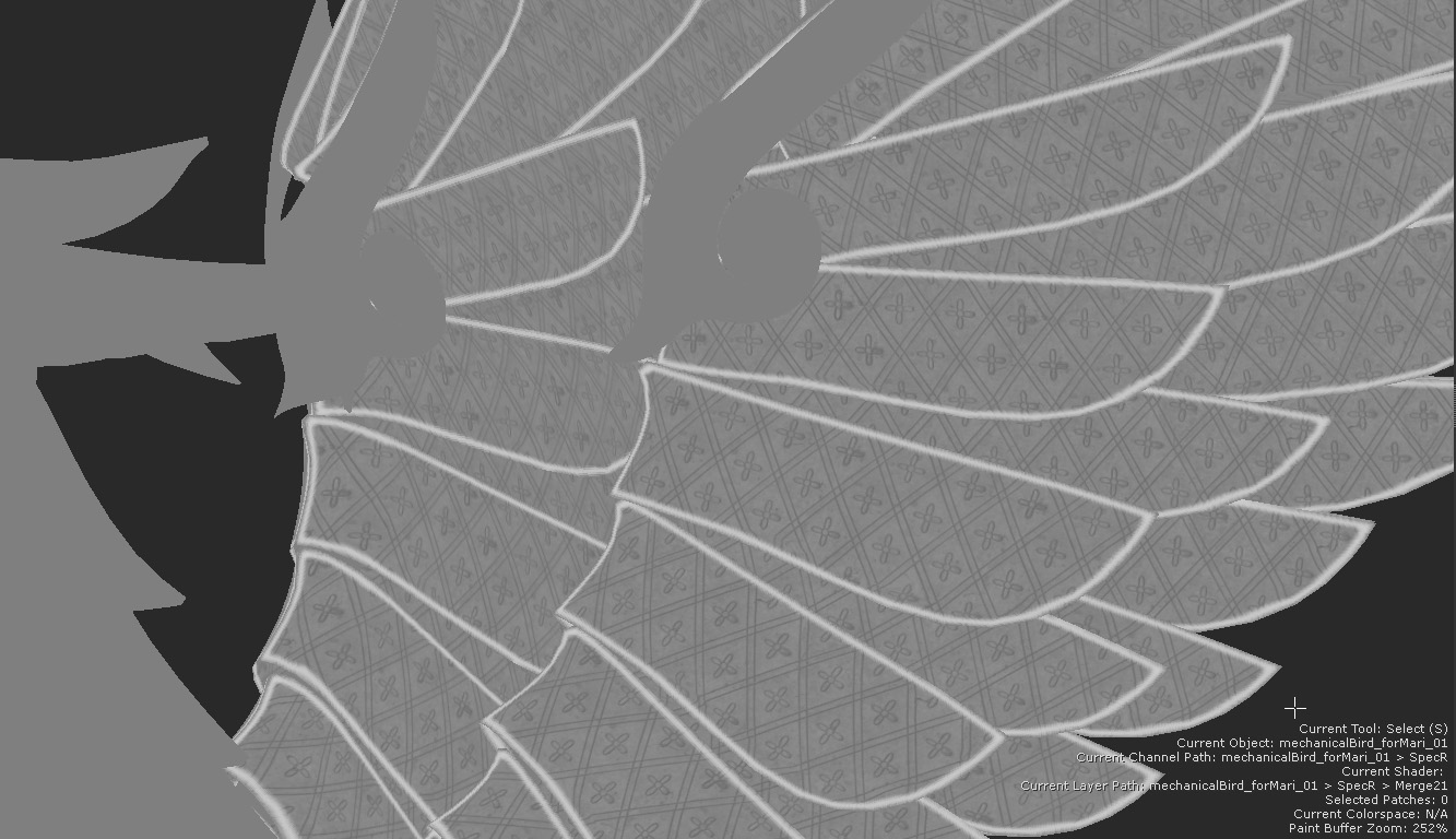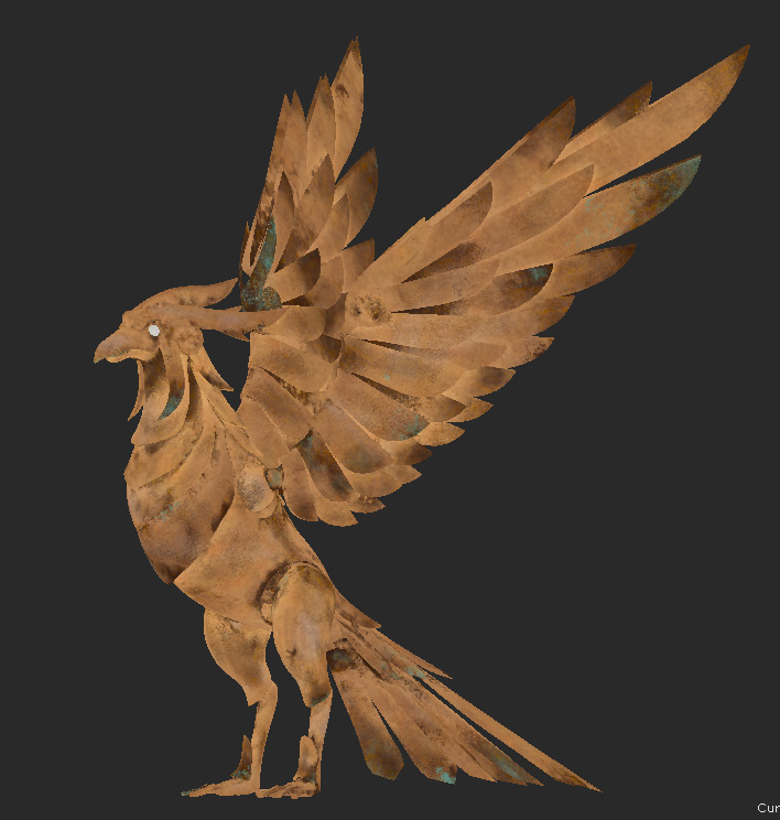 Here is an object that has had all of its maps textured. The wings are looking a bit plain though. Since the object is going to be an aged golden statue, it would be nice to get a bit of detail around the edges of the wing feathers to make it look a bit more grand.
