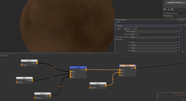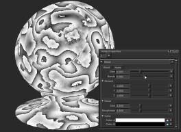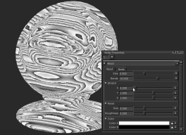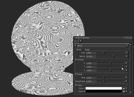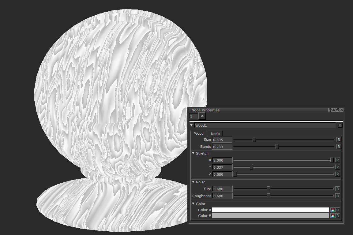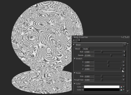 While creating a wooden effect is the most obvious use of this node, due to its striated nature it can be a great way to create other effects such as emulating layers of rock on a cliff texture or ripples in a sandy floor.