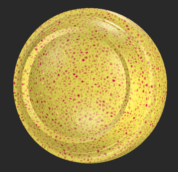 The Cellular node is a type of noise node that generates points randomly to simulate natural textures such as sparkles and gemstones, as well as organic textures such as human cells.