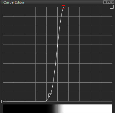 | 5. | Drag the handles in the Curve Editor to create a curve which reduces the mid-tones of the input. Use the image below as a reference. |