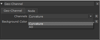 | 2. | Double-click the Geo-Channel node and pick any geo-channel to use with the node from the Channels dropdown in the Node Properties. If you're using the Example Material Design Project, select the Curvature channel. |