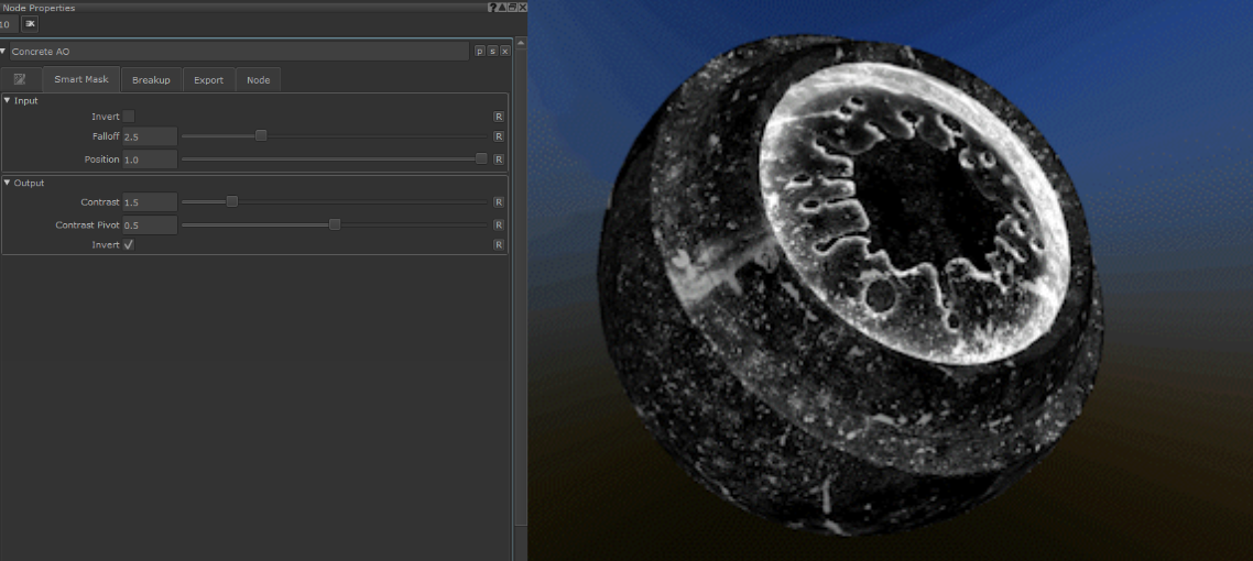 Once you have created a Smart Mask using the Smart Mask node, you can export the procedural using the Node Properties. The procedural can then be used in other projects and by other artists when imported to the Shelf. See Exporting Smart Masks and Importing Smart Masks to the Shelf.