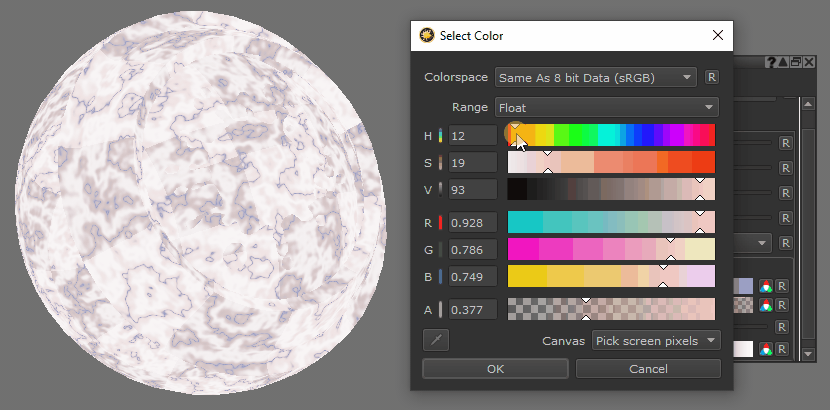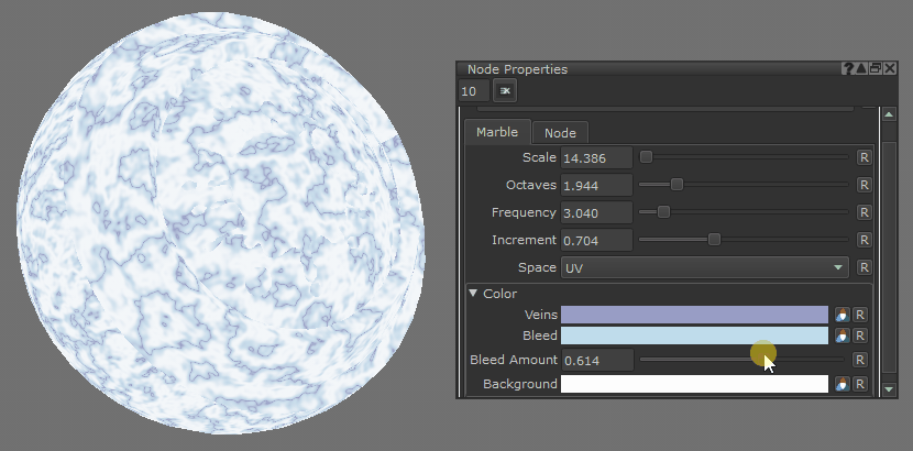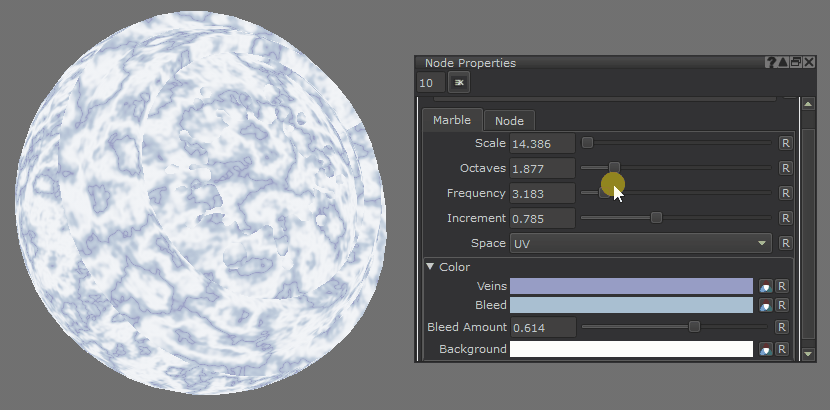 Marble node displayed on an object in Mari.
