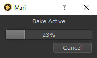 The Bake Active dialog is displayed. Click Cancel to stop the bake.