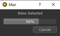 The Bake Selected dialog is displayed. Click Cancel to stop the bake.