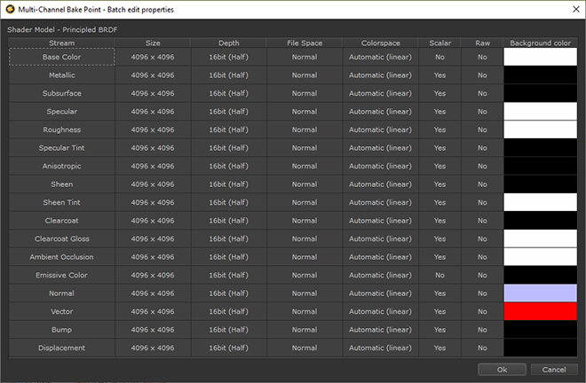 Multi-Channel Bake Point - Batch Edit Properties Dialog