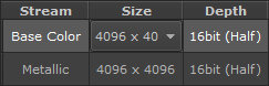 This section of the Multi-Channel Bake Point Node Properties allows you enable, disable, and select individual channels contained inside the Multi-Channel Bake Point node. From here you can choose which channels you want to create Bake Points for, by enabling those channels. If you only want to create Bake Points for a certain number of channels, you can select them in the Multi-Channel Properties, and use the Bake Selected button. All channels are enabled by default when a Multi-Channel Bake Point node is created. To disable a channel, click the orange button on the channel. Only enabled channels can be baked.