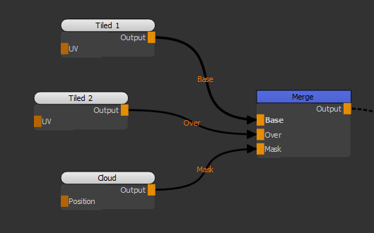 • Mask - Any node containing textures or paint, and any procedural node can be connected to the Merge node’s Mask input.