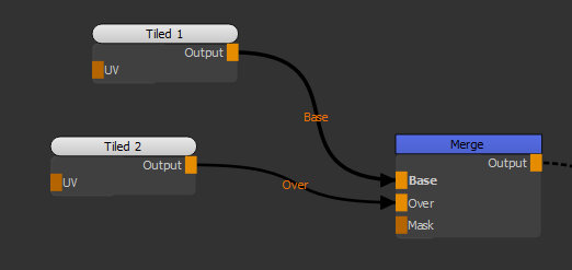 | 1. | Create two Tiled nodes and connect them to the Base and Over inputs of the Merge node. |