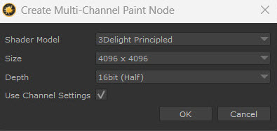 When you create a Multi-Channel Paint node, a UI dialog will pop up. This defines the settings for the Multi-Channel Paint node you’re creating.