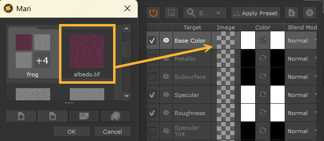 ) of your chosen stream in the Multi-Paint Palette, and choose an image from the window that appears. For example, the albedo image will be assigned to the Base Color stream.