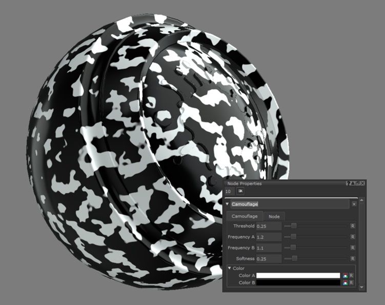 Procedural nodes allow you to add texture patterns, grid patterns, environments, and masks to your scene using a variety of parameter settings.
