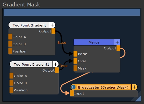 The name can be anything, but it's good practice to use a descriptive name so that you can quickly pick the correct broadcast in the receiver. - Connect the Gradient Mask Output to the broadcaster.