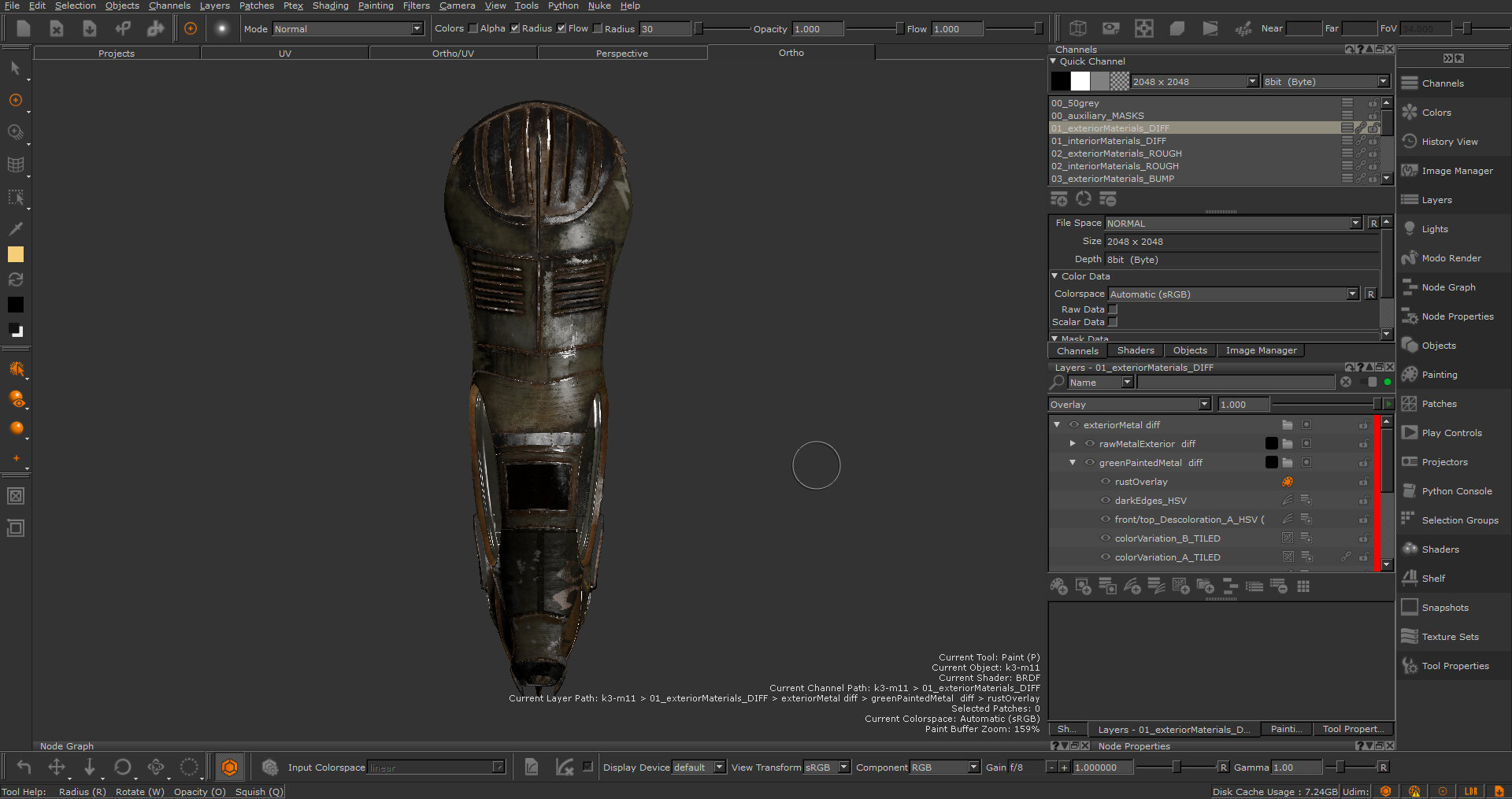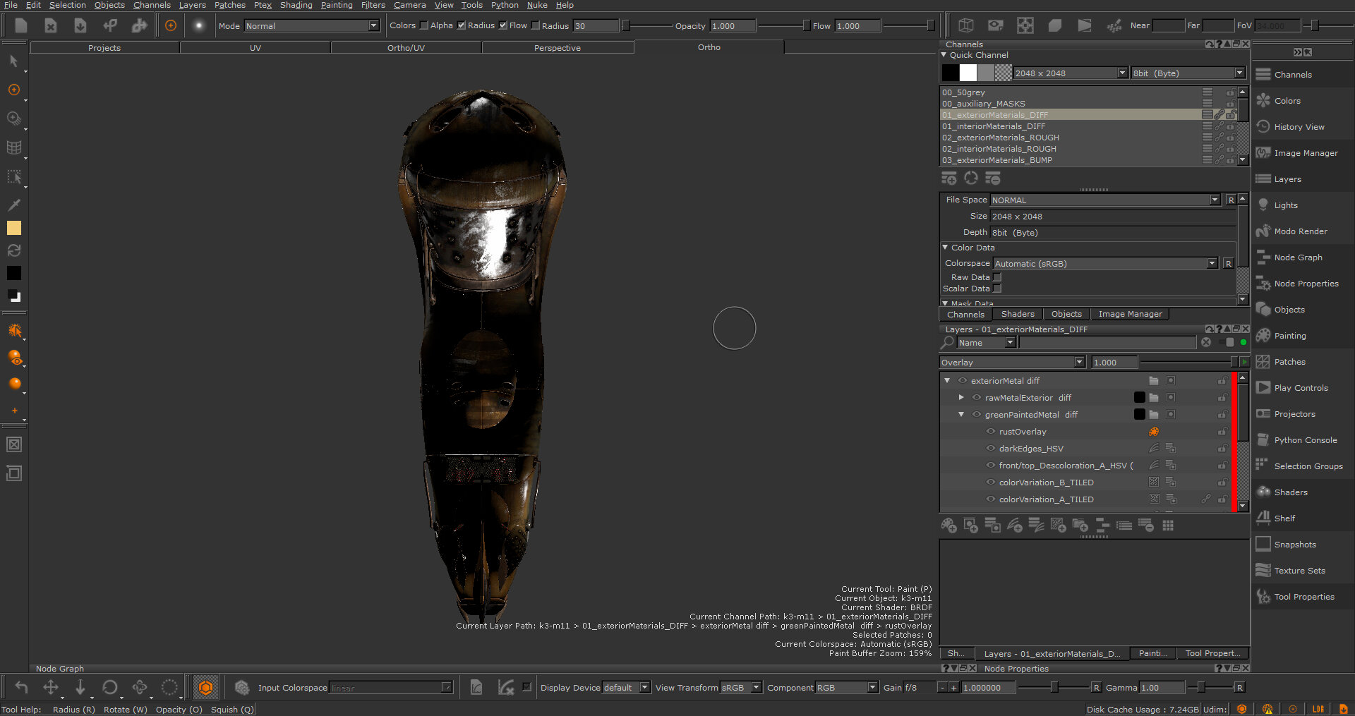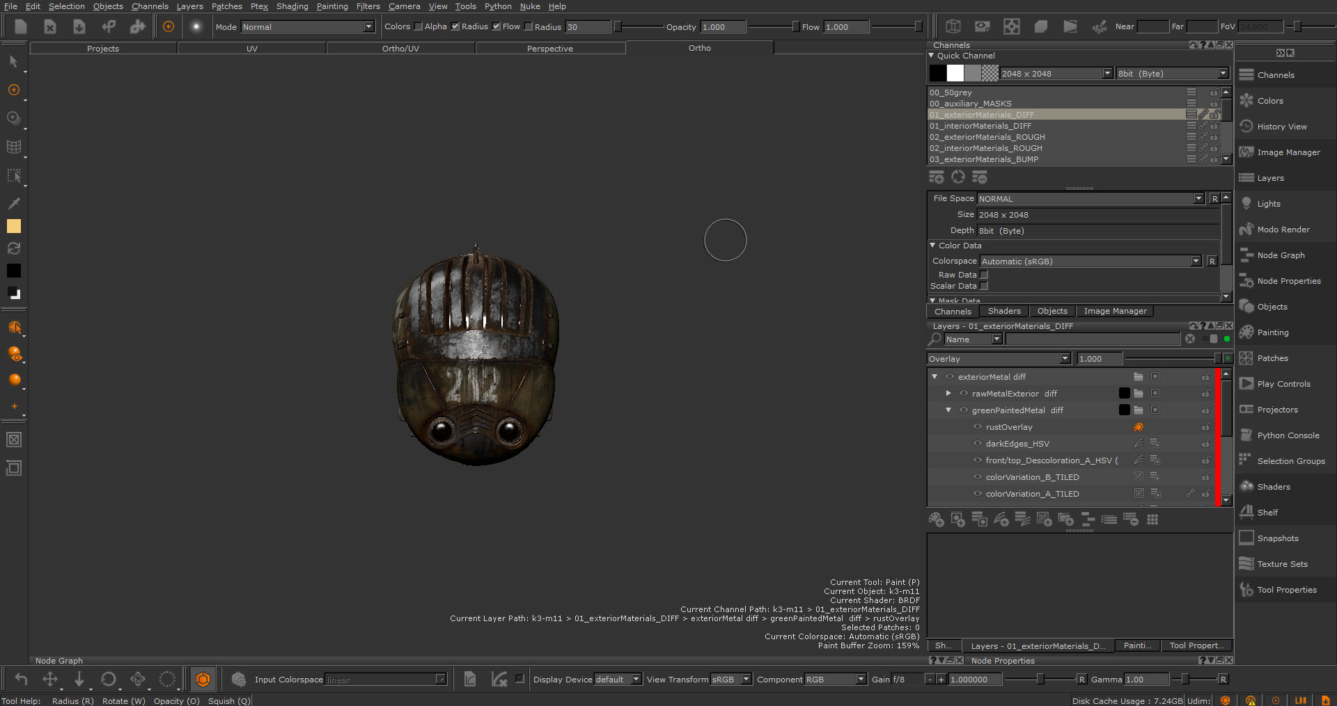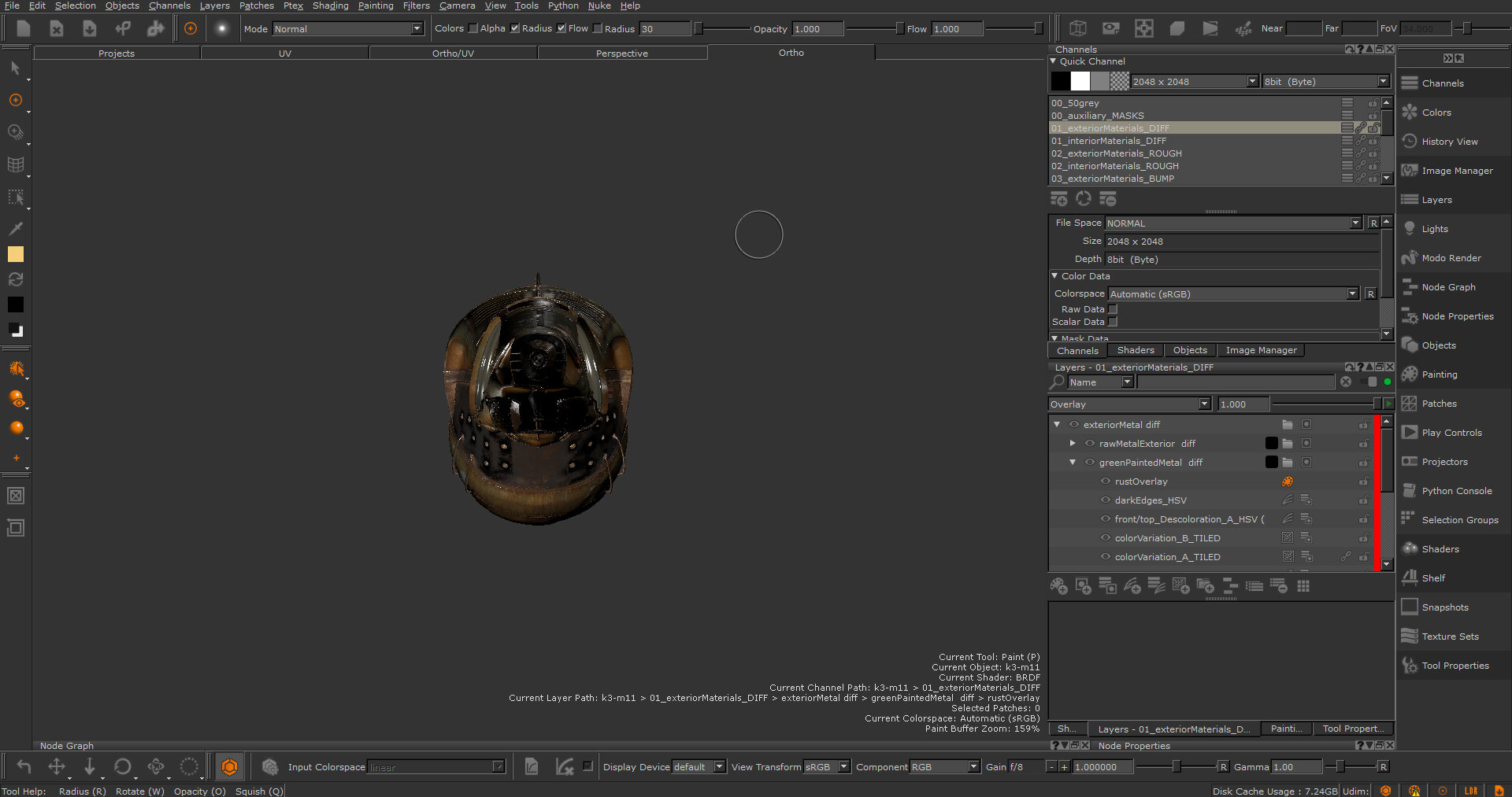 • Ortho/UV - this is a split screen, showing both the UV patches and the orthographic view.
