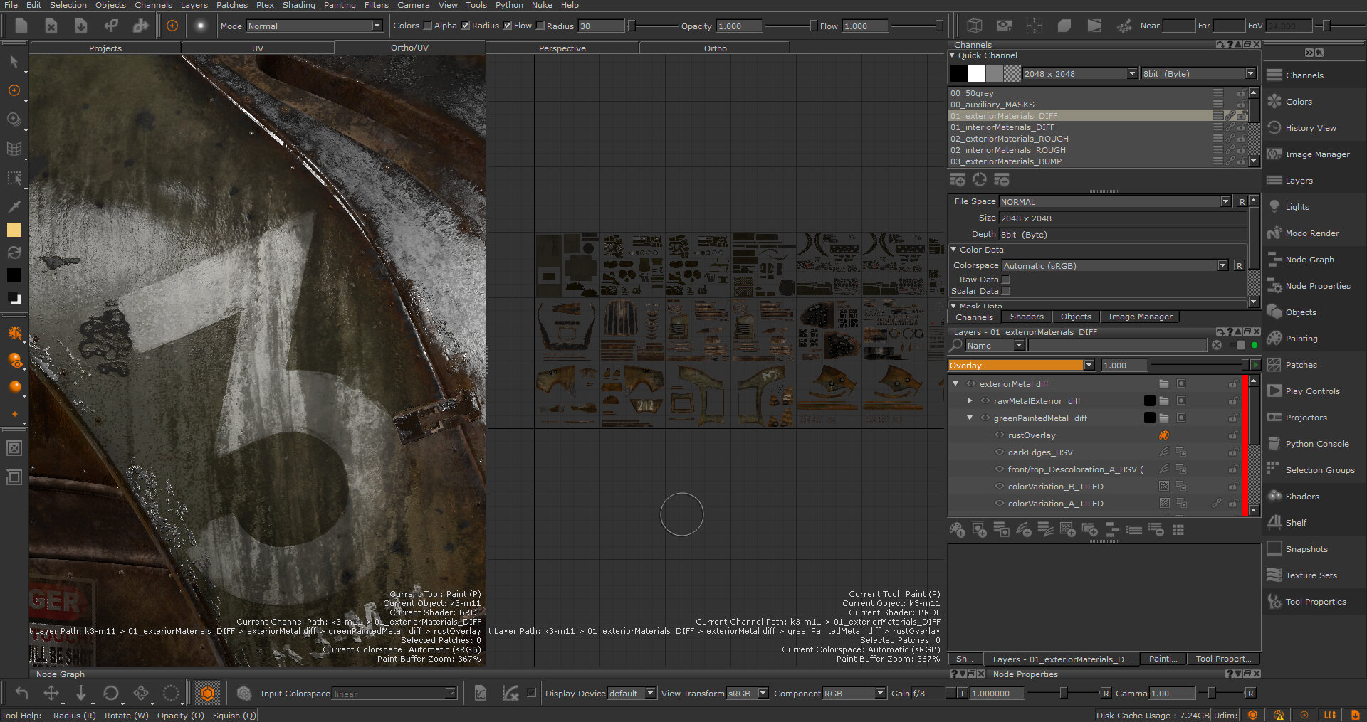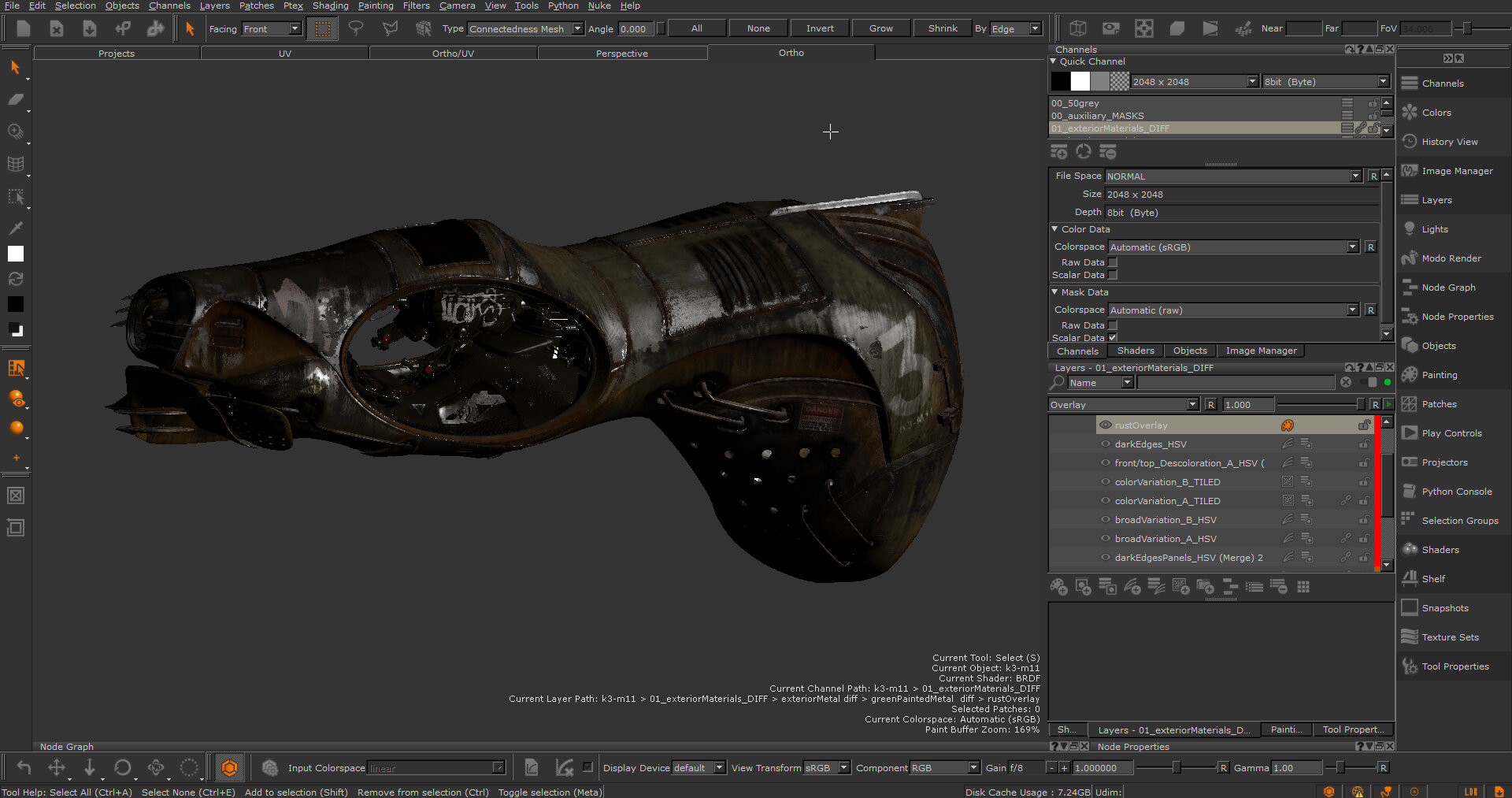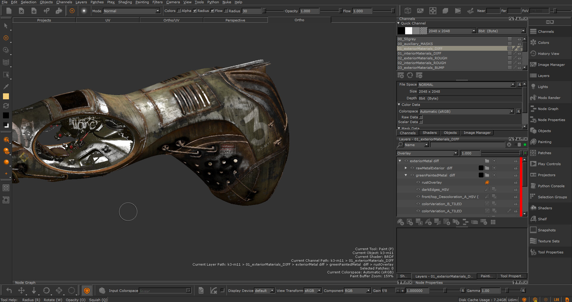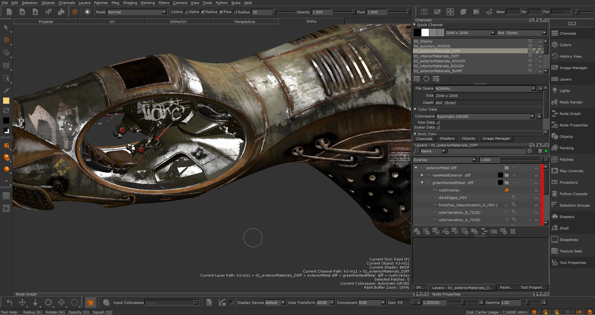 • Ortho/UV - this is a split screen, showing both the UV patches and the orthographic view.