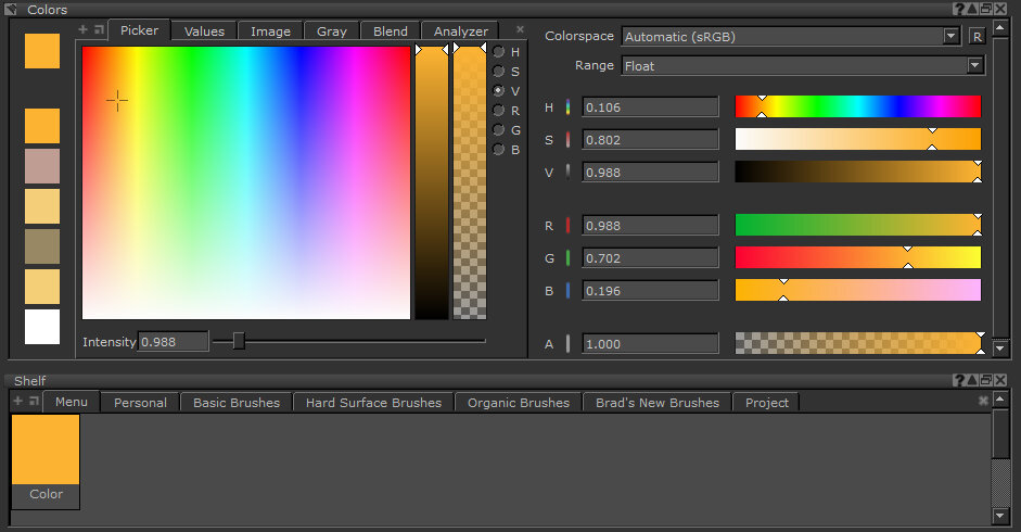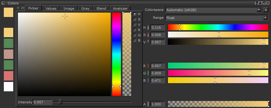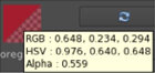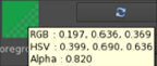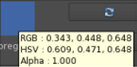 Tip: If you hover the mouse over a swatch, it displays RGB, HSV, and Alpha values: