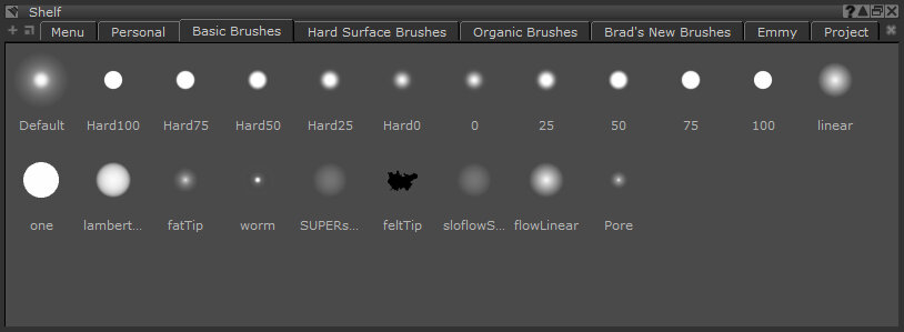 • Hard Surface Brushes - a set of predefined hard surface brushes.