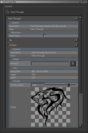 Tip: The Tool Properties palette includes many options for manipulating paint-through images.