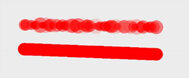 A stroke from the same brush with opacity set to 1.00 and 0.50 with no jitter, and 1.00 with maximum jitter: