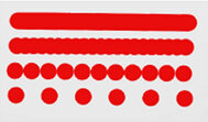 A stroke from the same brush with spacing set to .02, .25, .50, and 1.0: