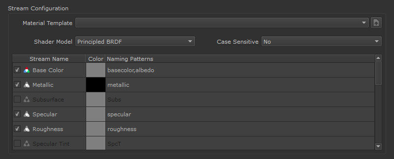 Note: The Stream Configuration table is used to match the texture files' naming patterns to the shader input they are targeted for.
