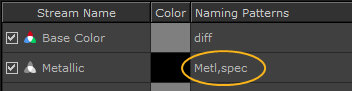 | 1. | Depending on the naming pattern information of your texture files, set the Filename Template. The default value is $NAME_$STREAM.$EXT For example: Metal_col.jpg |