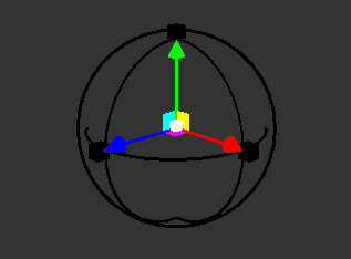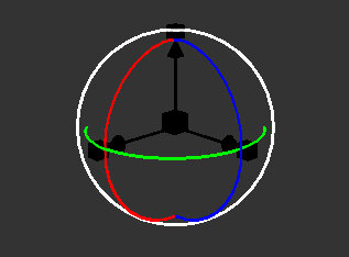 When you want to move an object using the Transform Selected Objects tool along either Global or Local space, a gimbal appears at the selected object's pivot point. A gimbal allows you to drag on transform handles to move, rotate, or scale the selected object. The colors of the handles correspond to the axes available in 3D space: red transforms the x-axis, green transforms the y-axis, and blue transforms the z-axis. Mouse over parts of the gimbal to highlight the control for each axis.