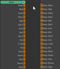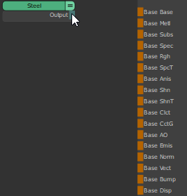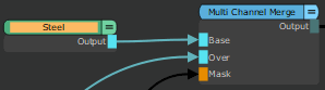If you are connecting a source node with shader model driven output ports, such as a Multi-Channel Merge node, to another Multi-Channel node or the Output nodes within a Material node, you can connect just one stream of the source node's output ports to its corresponding input, and all sibling output ports automatically connect to the sibling stream. If an output port has an existing connection, its stream is skipped.