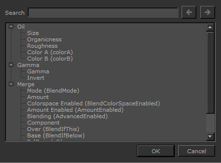Note: Mari allows you to search for controls to expose in the Pick Knobs to Add dialog. To do so, enter the name or part of the name of a control in the Search field and click the left