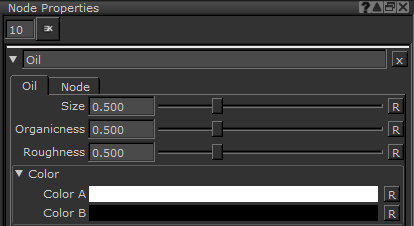 For example, the Oil node has controls for Size and Color to determine the look of the oil effect. See