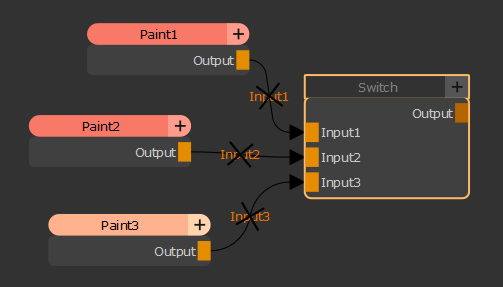 • Set up your node graph so that multiple nodes’ outputs are connected to the Switch node’s input ports.