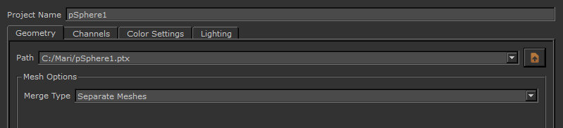 Note: Even if you select Create Separate Geometries (Ptex Only), Mari only displays a single object on the canvas. However, when you export a channel you have the option to export individual .ptx files for each geometry.