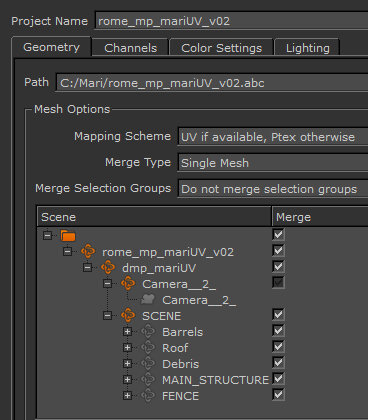 Warning: If you don't select individual objects in the Object Hierarchy Tree, the entire Alembic or FBX file is loaded. Depending on the size of the file, this could take longer than expected to load into Mari.