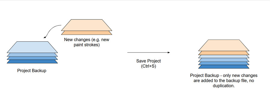 Each time you save your project, Mari records the changes since your last save. This snapshot is saved in your backup location as defined in File > Settings > Backup Path. This means Mari’s backup system is incredibly lightweight.