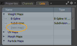 | 4. | On the bottom of the panel, open the Lists tab, expand Weight Maps, and click (new map). |
