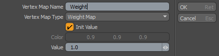 | 5. | Ensure that the following weight map properties are set and click OK. |